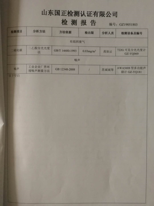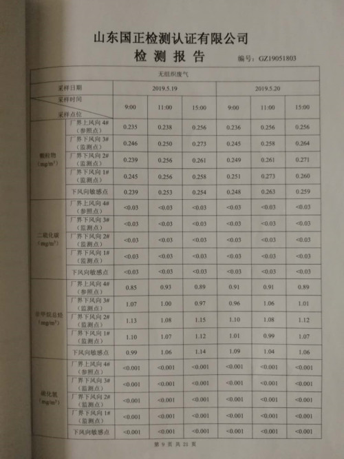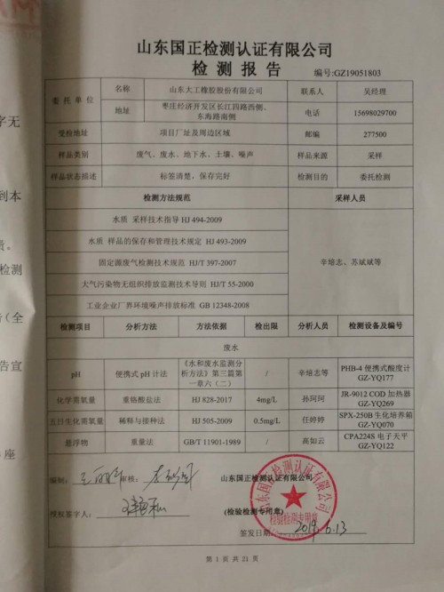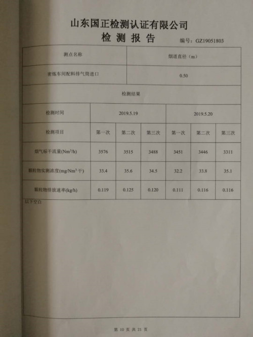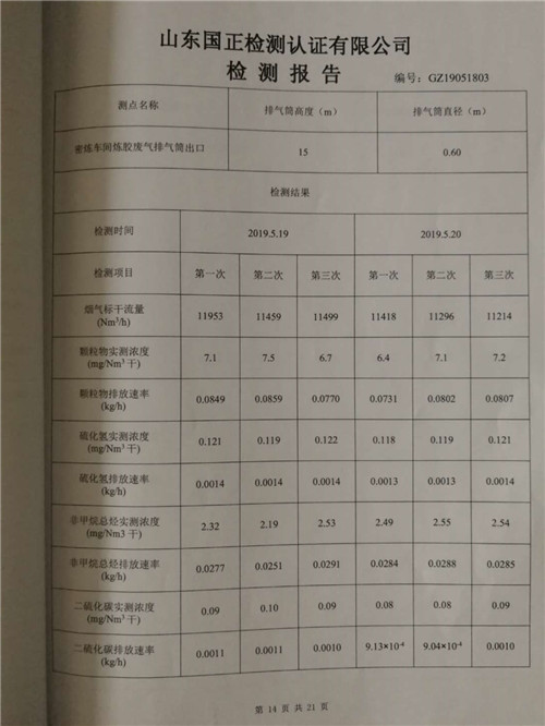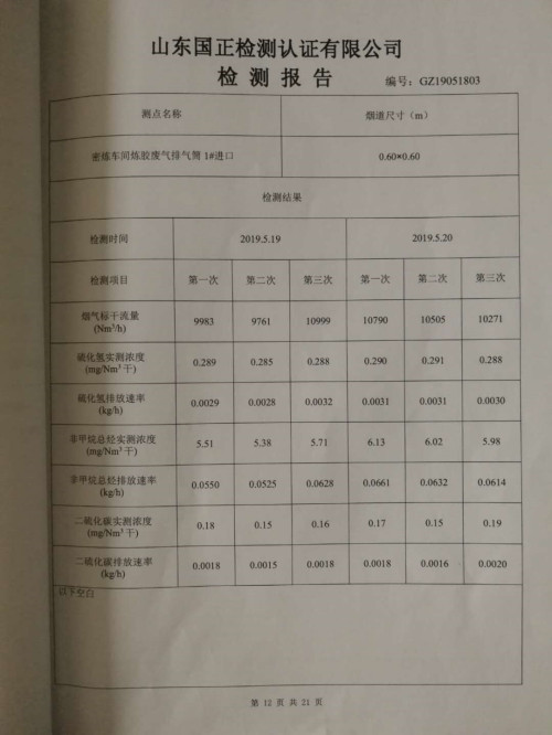 山东大工橡胶工业环境自行监测报告
